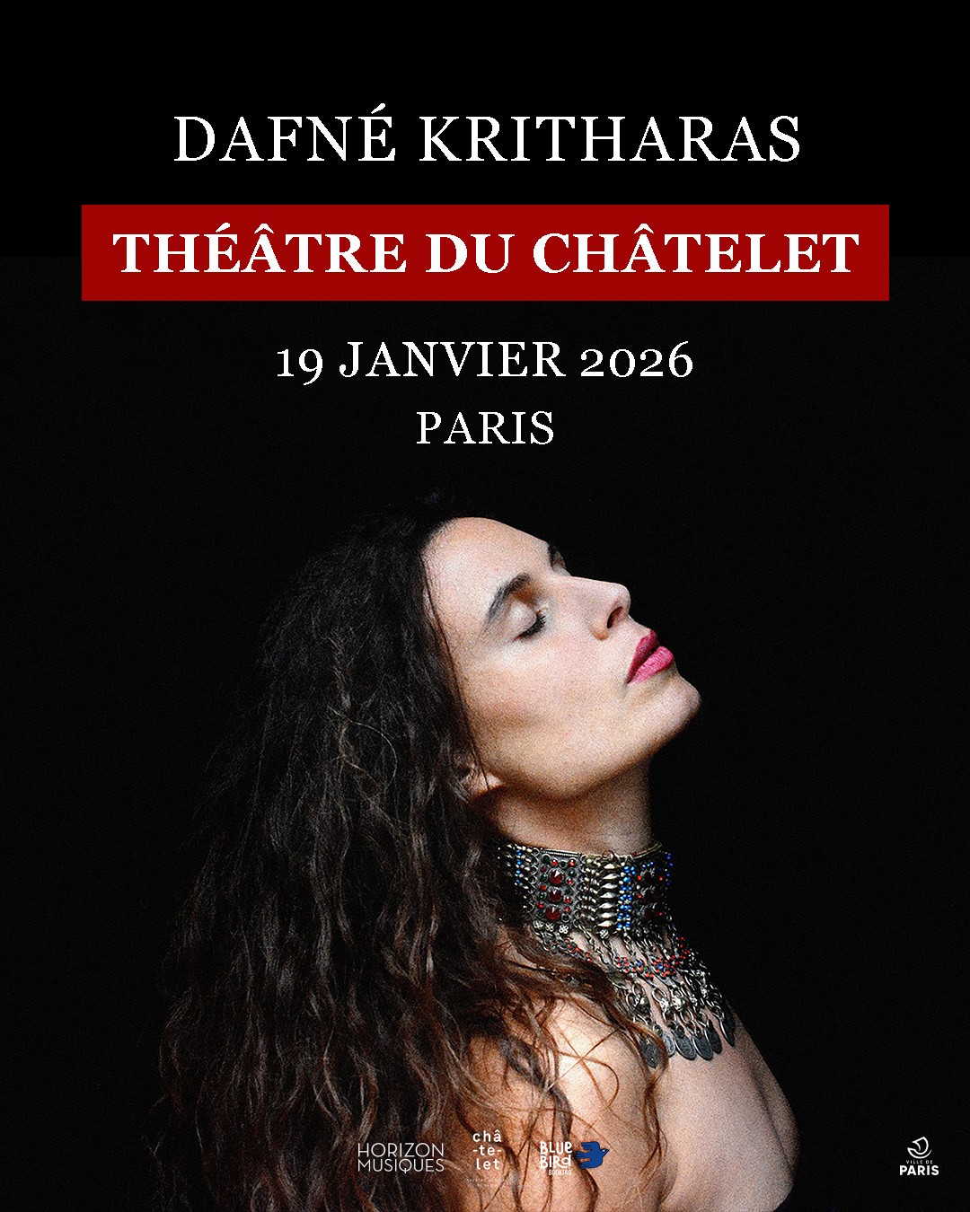 Sauvage ou d’un raffinement absolu, la voix de Dafné Kritharas emporte celui qui l’entend dans un univers mystique, sensible et enflammé. Dans ses chansons en grec et en français (de ses deux pays d’origine), elle passe à travers une infinité de nuances et exprime des sentiments qui semblent venir d’un autre temps et nous touchent pourtant au fond du cœur.